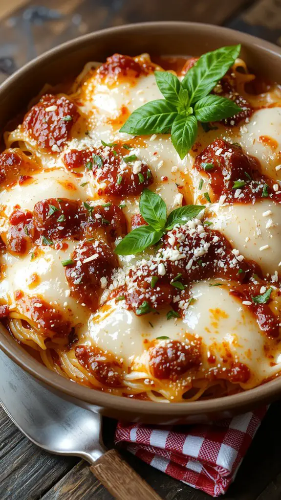 Expert cooking techniques can elevate your baked spaghetti from good to exceptional. I recommend using proper knife skills when chopping herbs and garlic – it guarantees even distribution of flavors throughout the dish.