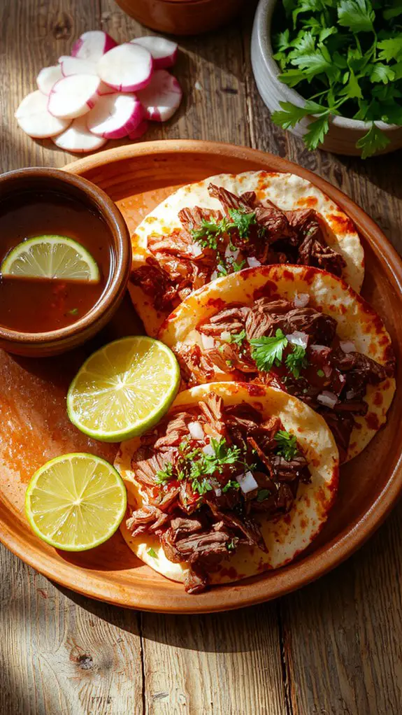 To create authentic Mexican birria tacos that burst with rich, complex flavors, you’ll need a careful blend of dried chiles, aromatic spices, and tender meat. The key to achieving that signature deep red color and intense taste lies in selecting high-quality dried chiles, while the meat choice can be flexible based on your preference. Traditional birria calls for goat meat, but beef has become equally popular and more accessible.