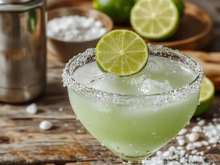 - Rim the glass with salt (or sugar!) – Rub a lime wedge around the rim, then dip it in coarse salt or sugar for that classic finish. Skip this step if you prefer it neat.