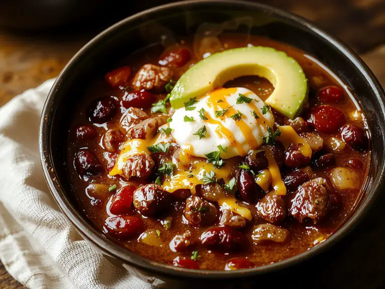 – Serve and garnish: Ladle into bowls and top with shredded cheese, sour cream, chopped cilantro, or diced avocado.