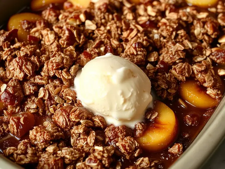 The secret? Juicy, ripe peaches that caramelize into a sweet, bubbling syrup, topped with a buttery, golden-brown oat crumble that’s just the right amount of crunchy.