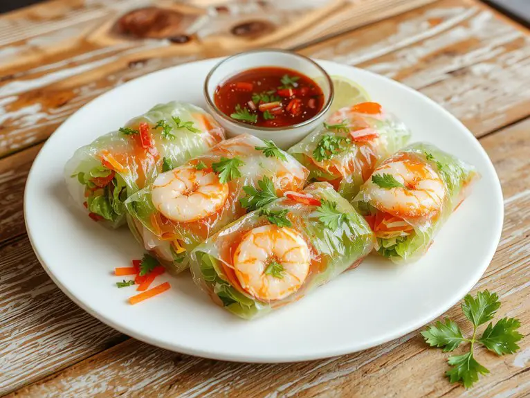 I’ve spent years perfecting my spring roll recipe, aiming for that delicate balance of crunch and flavor. The filling is a mix of vibrant vegetables, fresh herbs, and your choice of protein, wrapped in delicate rice paper. Achieving the perfect crispiness hinges on a few key steps and a tangy dipping sauce that elevates the entire experience. There’s a secret to rolling them tight without tearing—care to find out how it’s done?